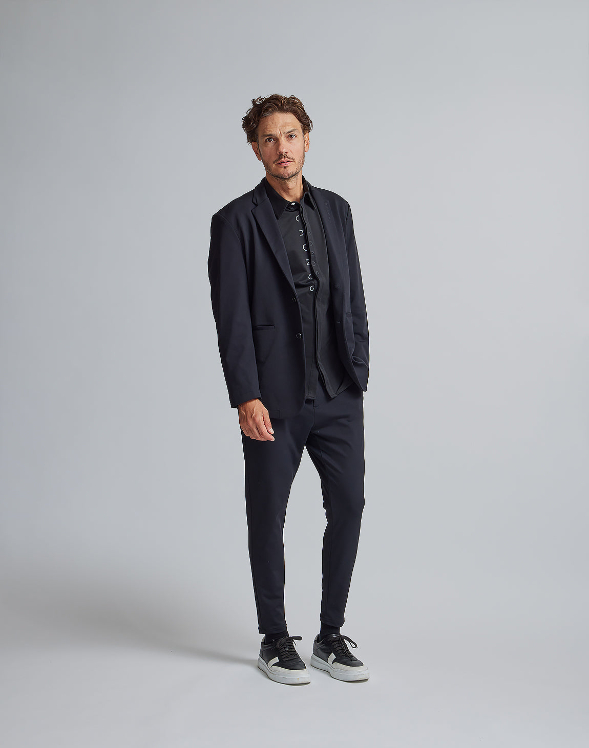 襟部分に同色でプリントを施しフィット感のあるシルエットで洗練されたスタイルを演出します。