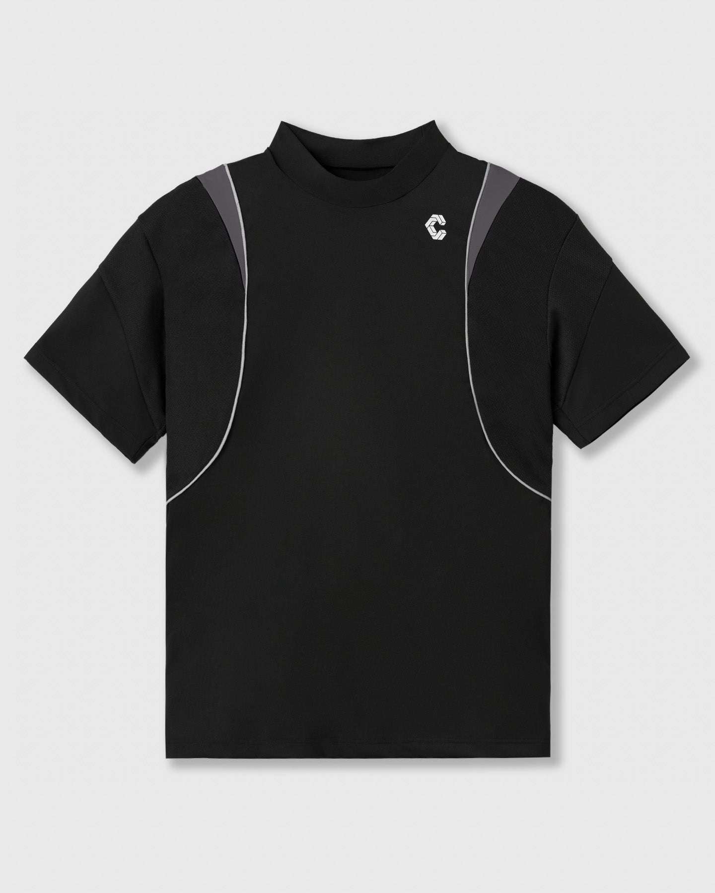 A mock neck top that creates a sharp, sporty style.