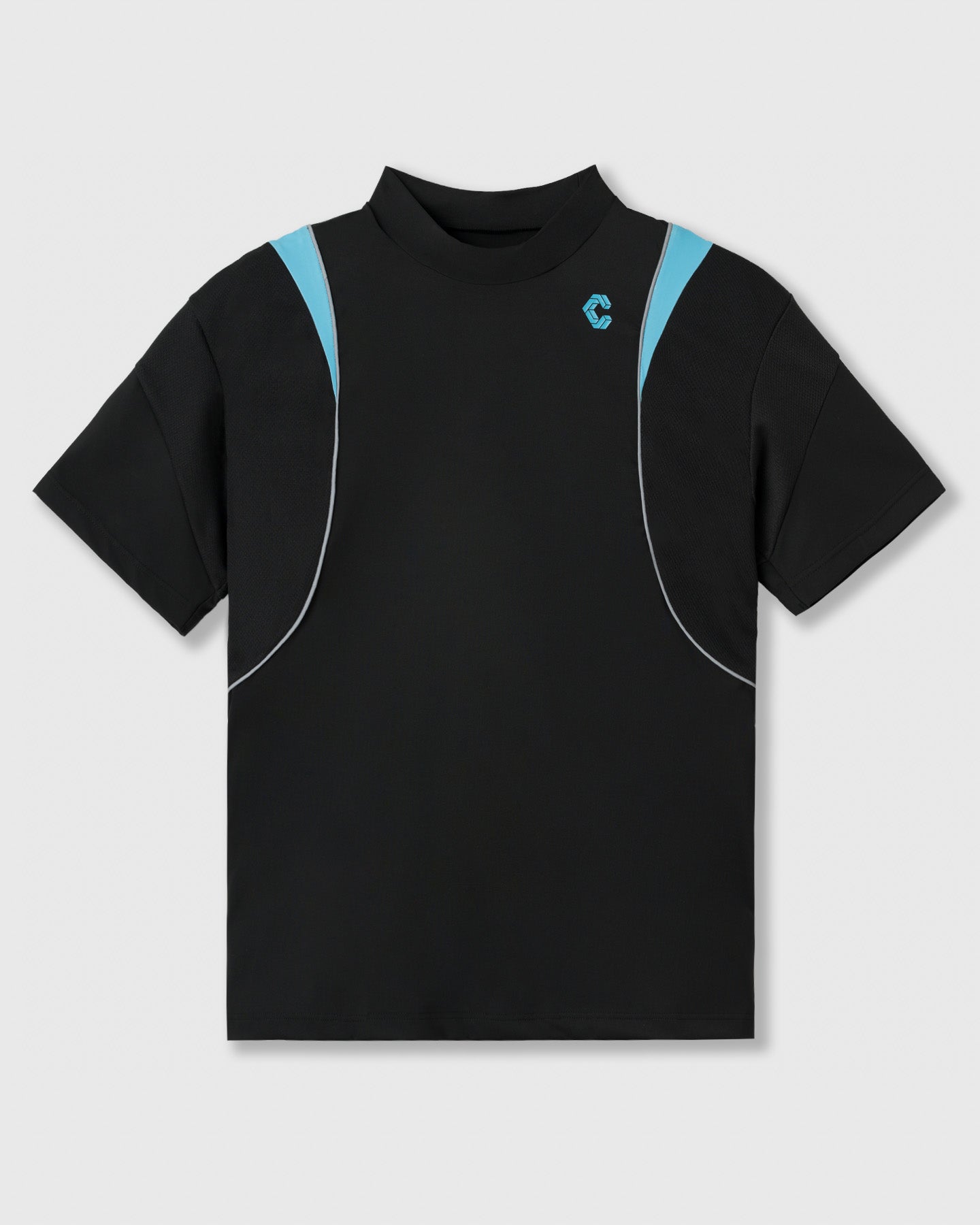 A mock neck top that creates a sharp, sporty style.