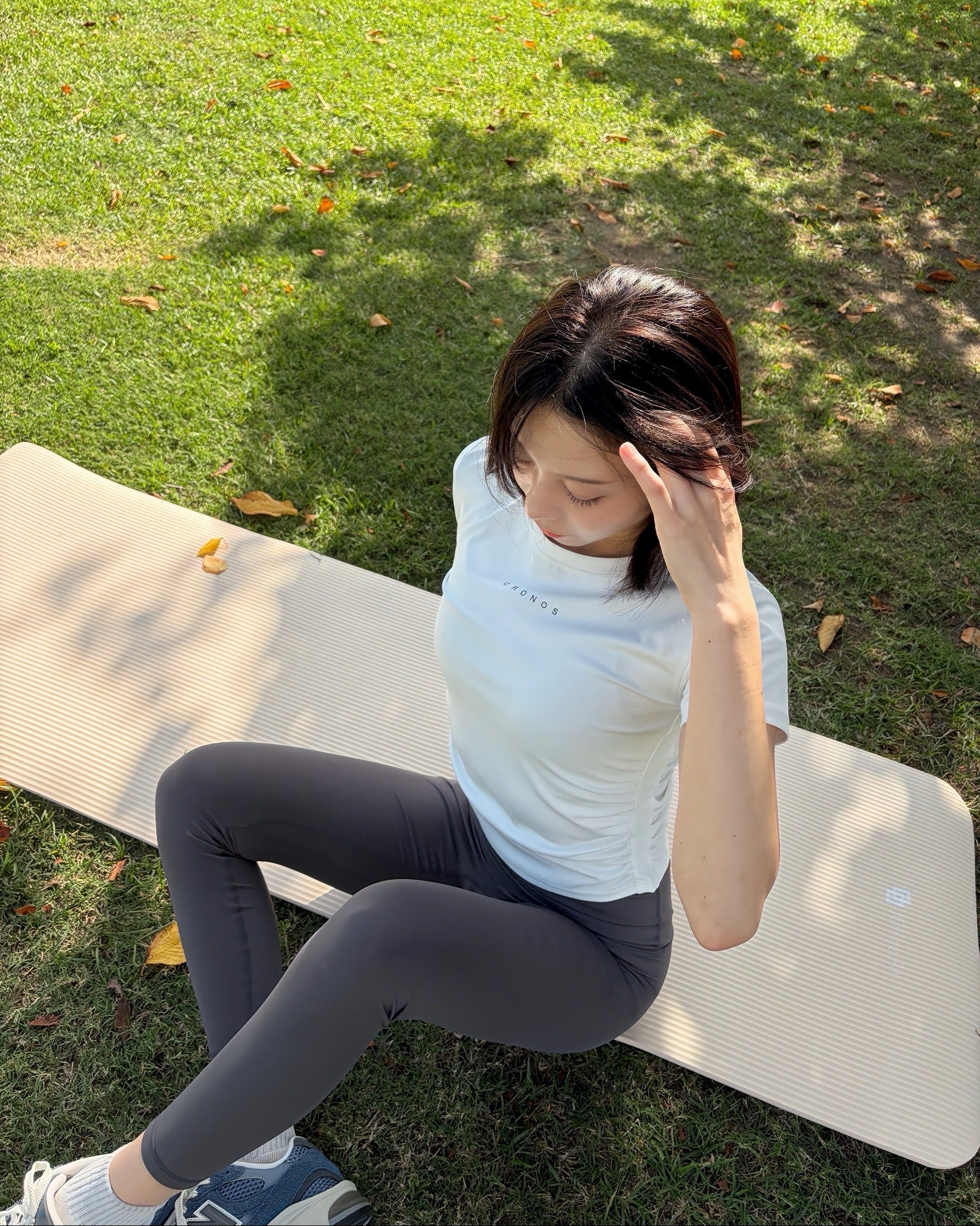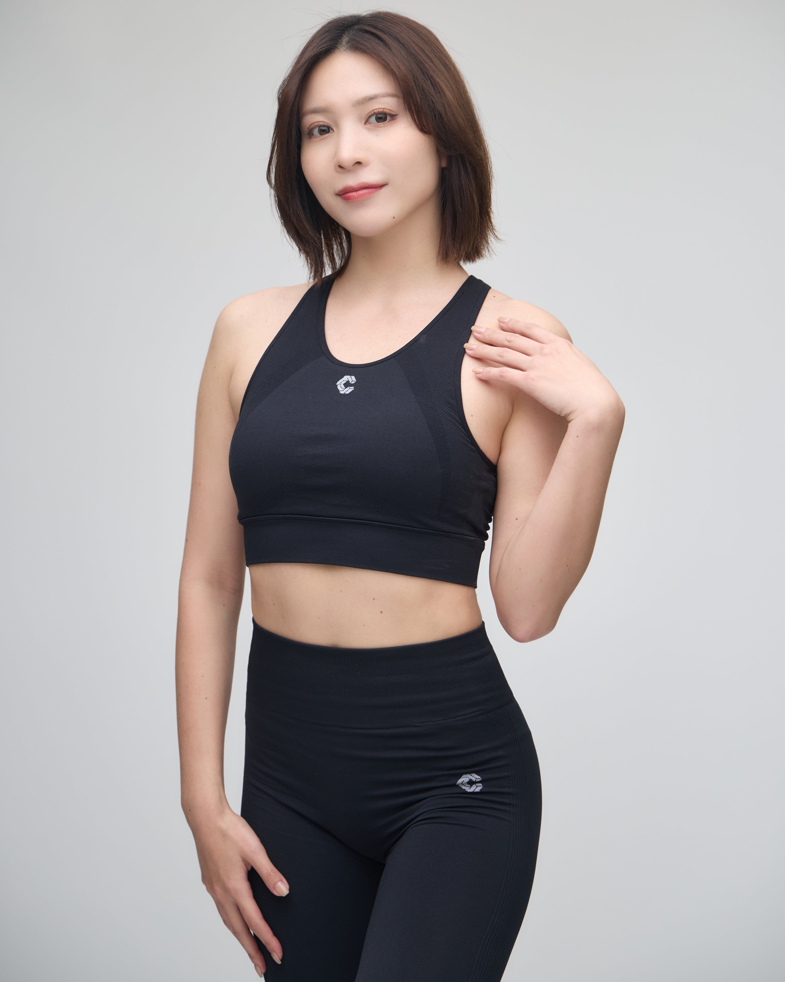 ヒップラインが綺麗に見えるシルエットがお気に入り!ブラトップの後ろのカットデザインも背中が綺麗にみえておすすめ。クロノスウェアの中でもかなり上位の動きやすさ、伸縮性◎