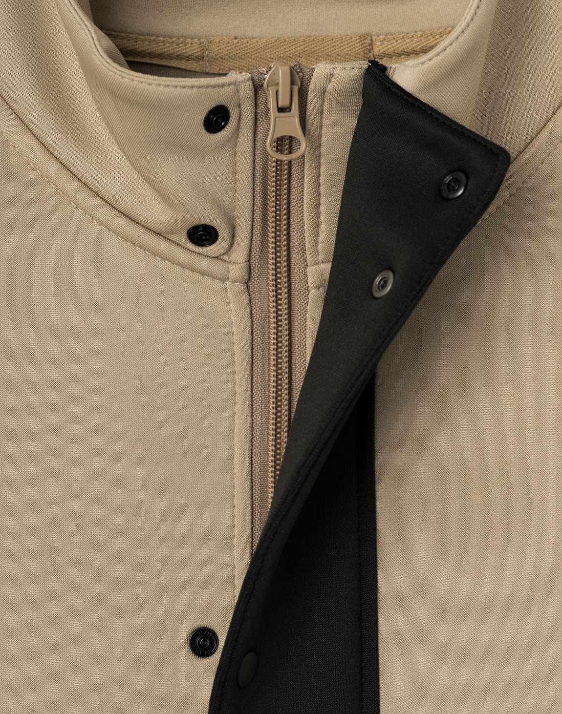 光沢のある平織素材を部分的に切り替えた、CRONOS BLACKの新作ハーフジップブルゾン。